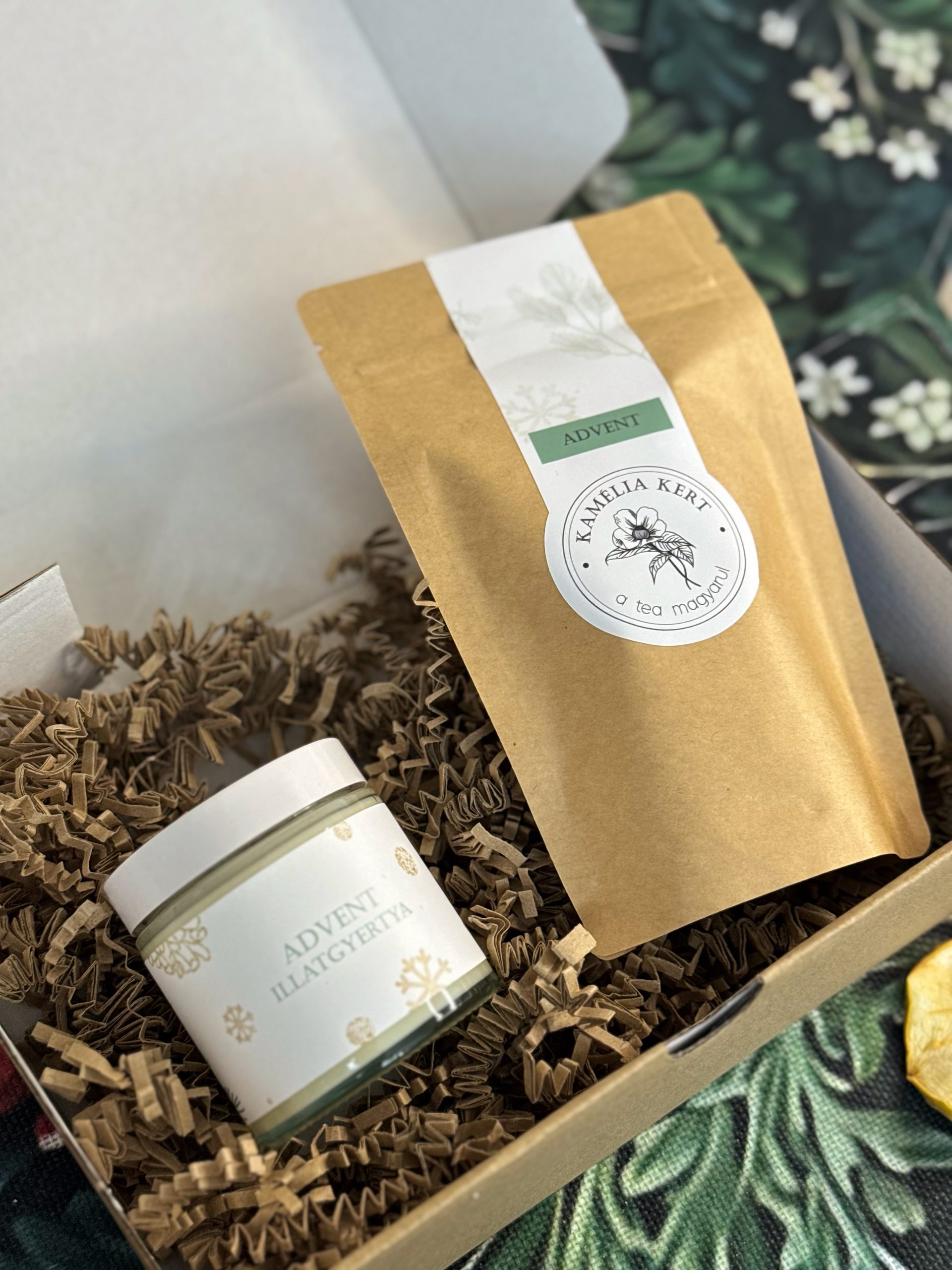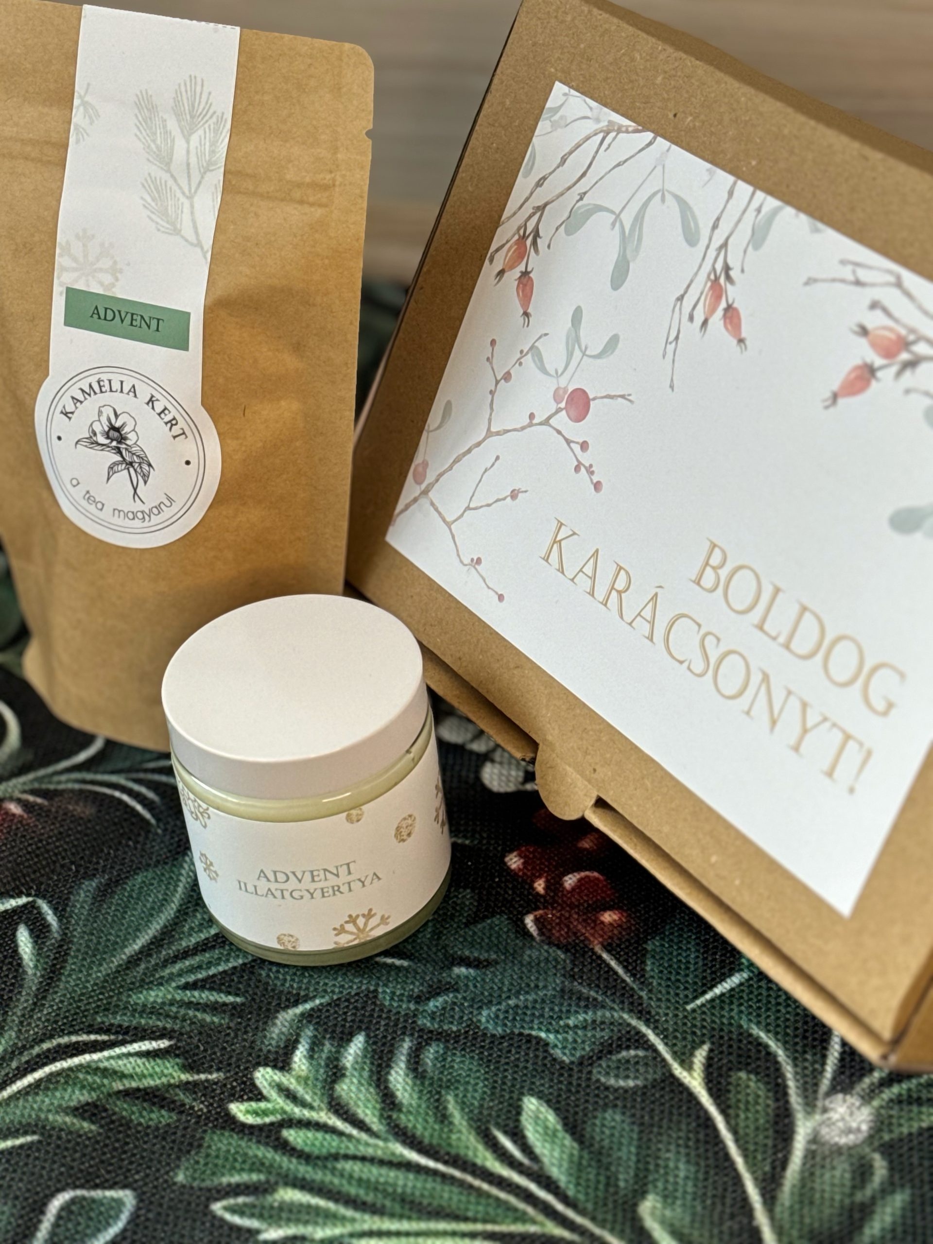 Limitált kiadású, ünnepi díszdoboz karácsonyi teával és illatban hozzá illő szójaviasz gyertyával.